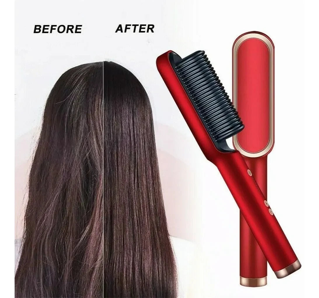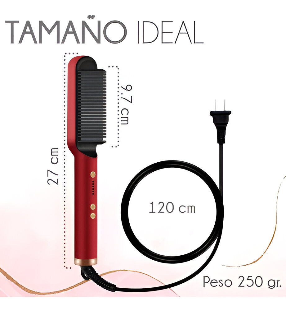 Este cepillo eléctrico multifuncional permite alisar y ondular el cabello de manera rápida y segura. Su diseño en forma de cepillo facilita su uso, evitando quemaduras accidentales y ahorrando tiempo en el peinado.